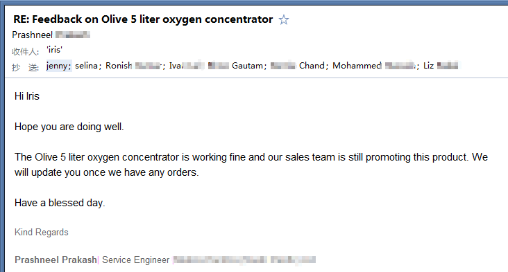 The Olive 5L Oxygen Concentrator has been exported to over 30 countries and regions, including the United States, Germany, Thailand, Vietnam, and Mexico. It has received high recognition, especially in the fields of home healthcare and elderly care.On major platforms such as Alibaba, this model consistently maintains a 4.8-star rating or higher, firmly ranking among the top-selling medical devices.